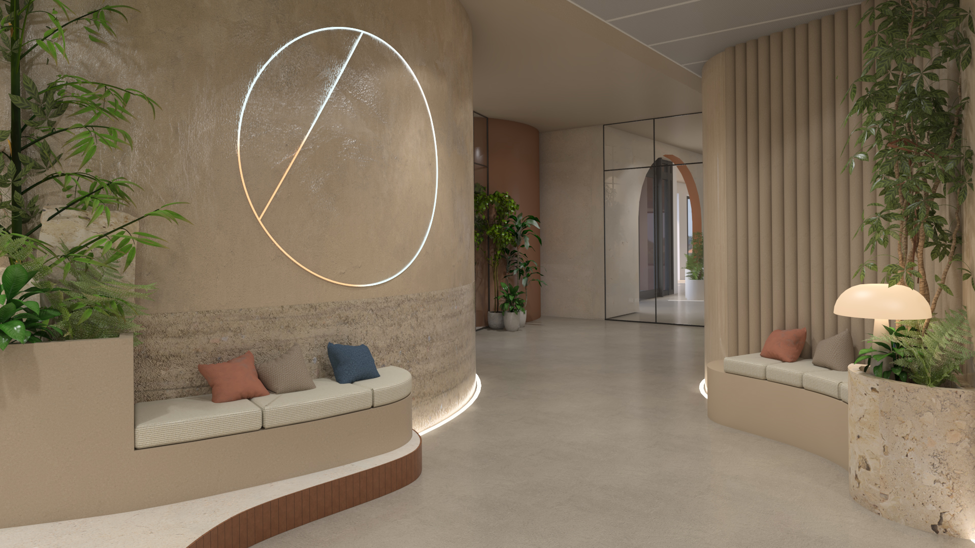 The Invitacare design concept envisions a therapy space emphasizing calm, light, and natural elements, allowing the sense of healing to extend beyond the individual therapy rooms. Located in the city center, the clinic focuses on young adults (ages 20–27) experiencing depression.