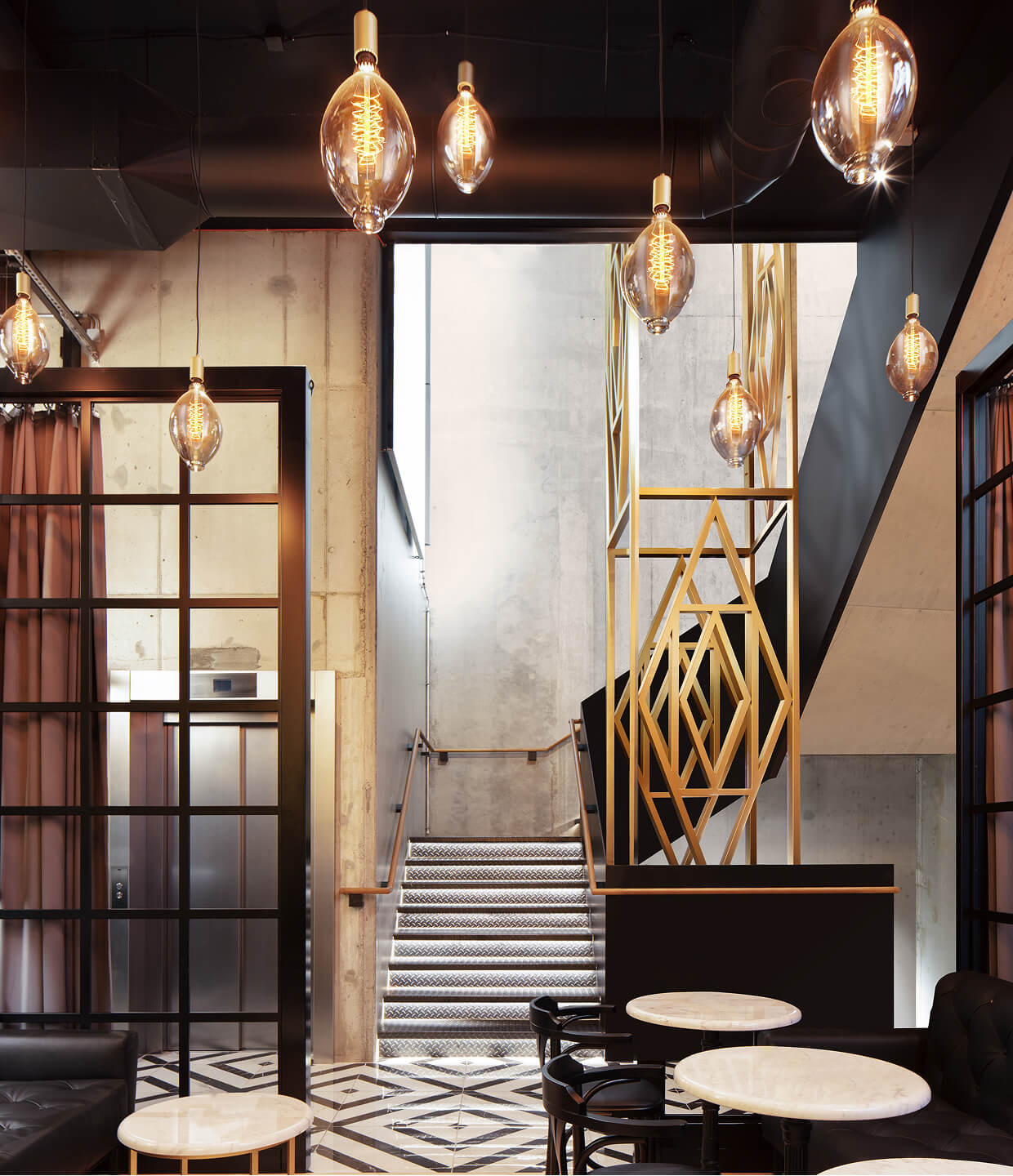 By merging these aspects, a striking interior is created that spans three levels, appearing elegant and high-quality while offering a distinctive and memorable experience for visitors.